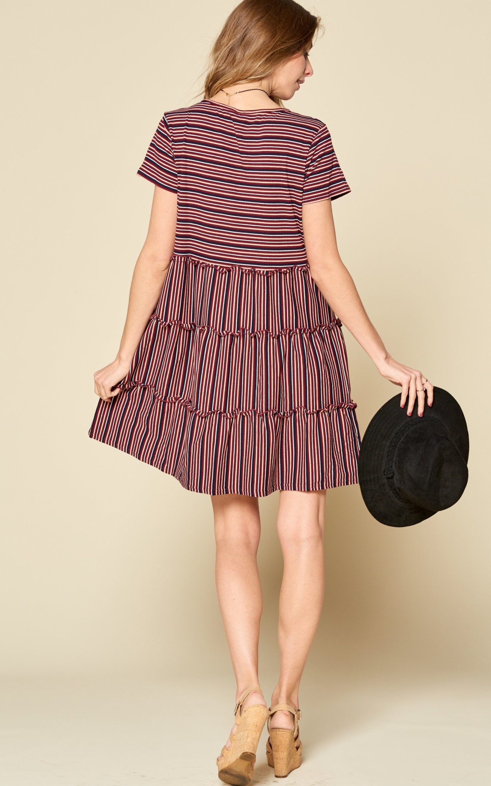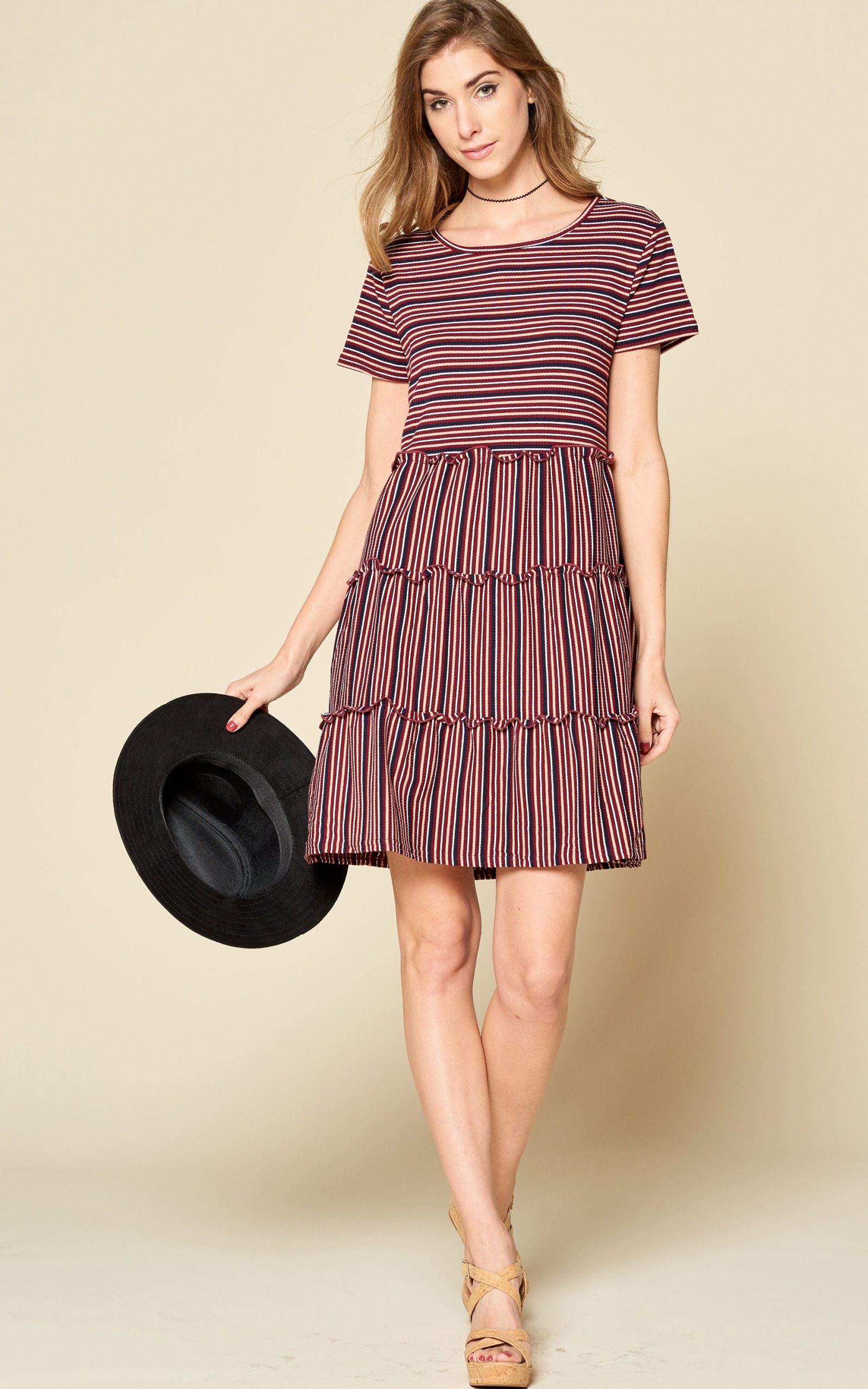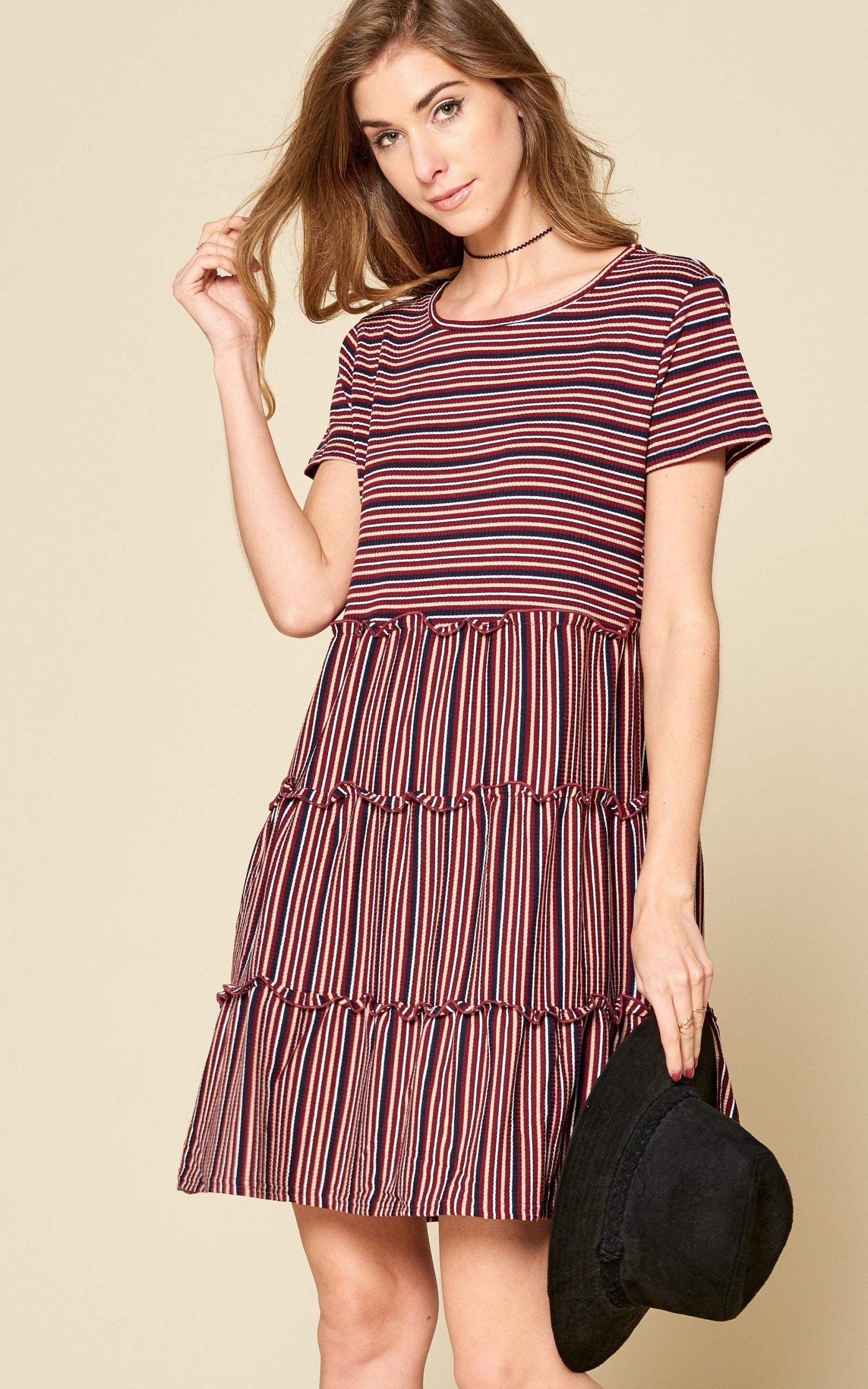 Be the first to review “Stretchy Stripe Mini Dress: Ribbed Knit Round Neck”
